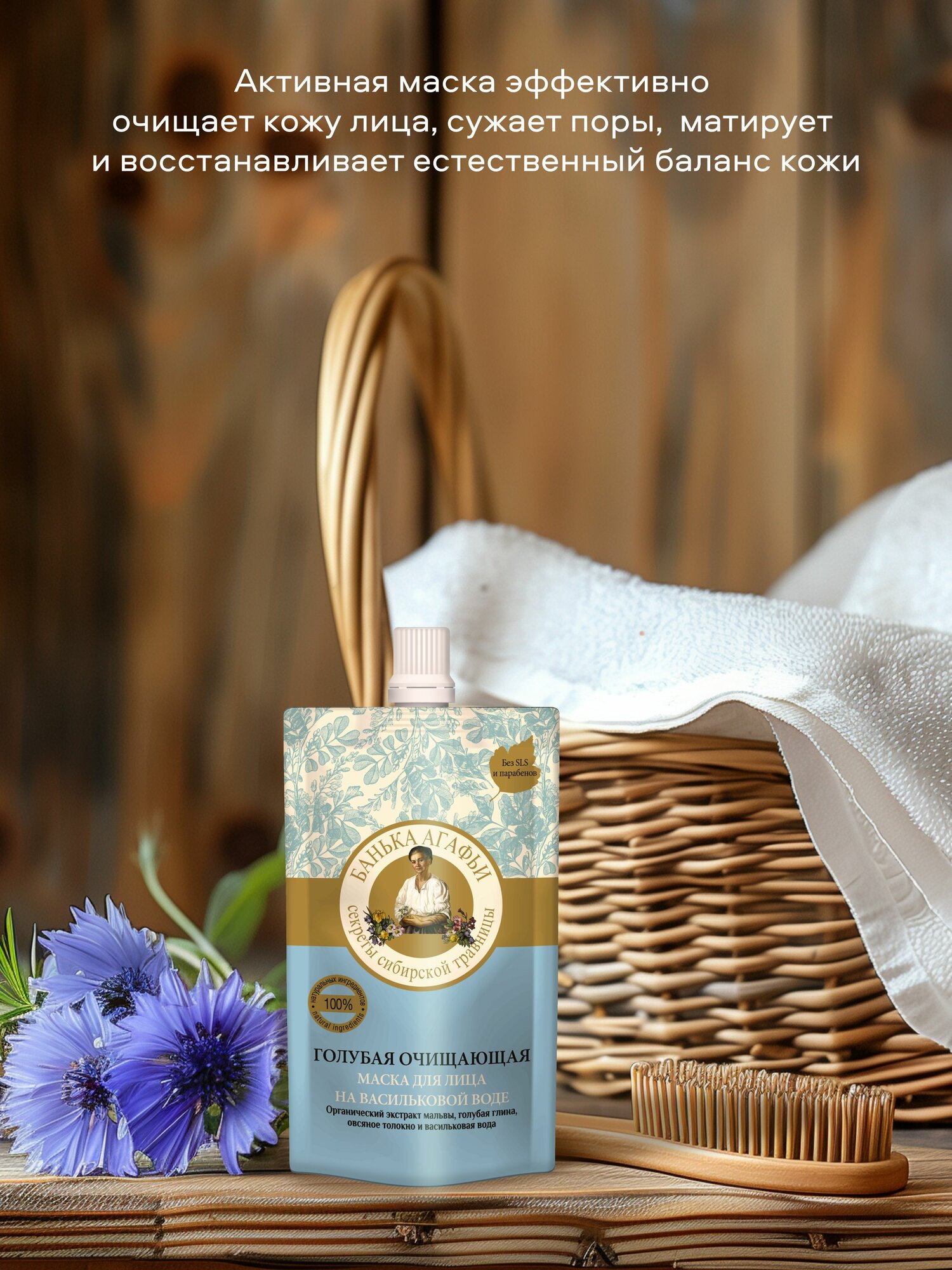 Рецепты бабушки Агафьи Банька Глиняная маска для лица голубая очищающая противовоспалительная от жирного блеска, черных точек и прыщей 2 шт х 100 мл информация: