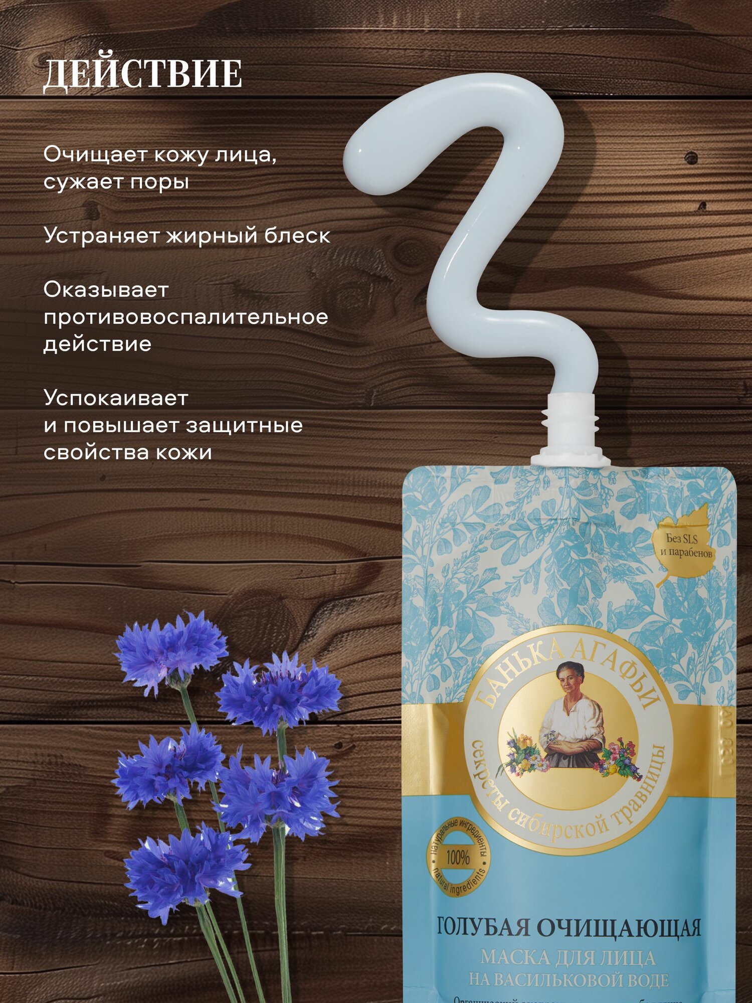 10 цен на Рецепты бабушки Агафьи Банька Глиняная маска для лица голубая очищающая противовоспалительная от жирного блеска, черных точек и прыщей 2 шт х 100 мл