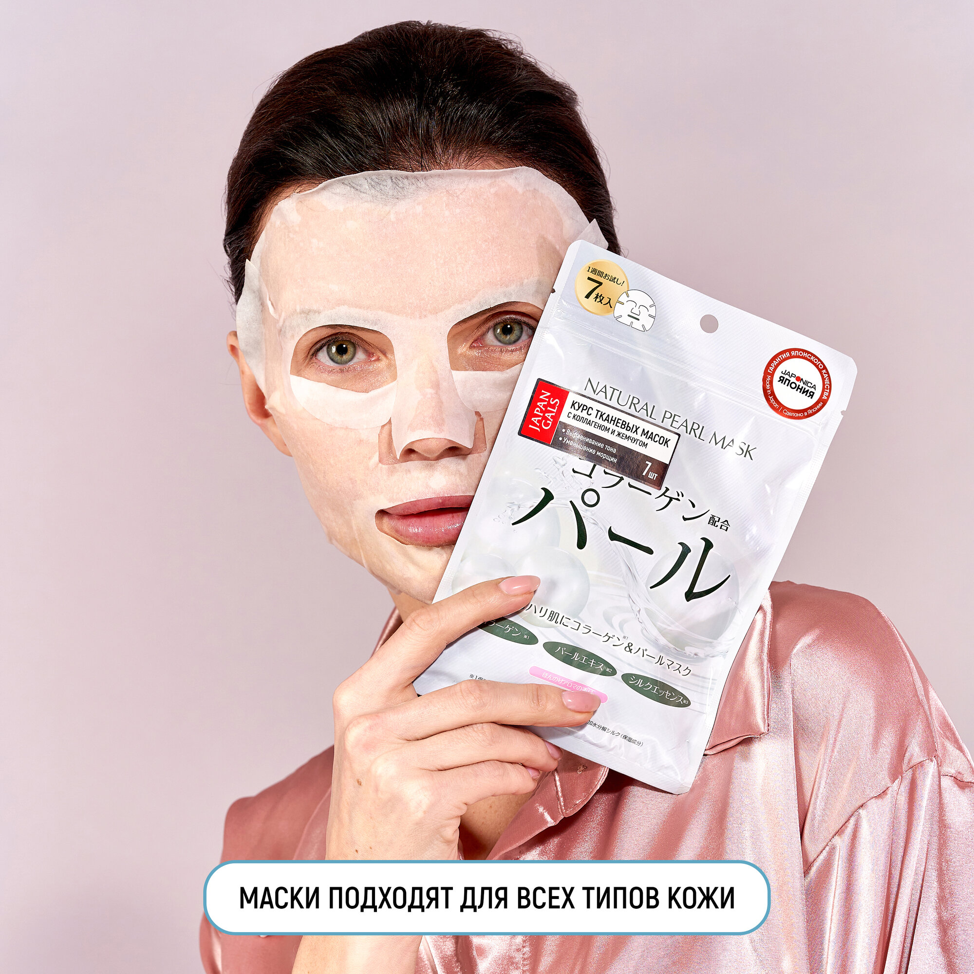 JAPAN GALS Маски для лица тканевые натуральные (7 шт) с экстрактом жемчуга и коллагеном, увлажняющие, питательные / Для упругости и сияния кожи, против морщин (Япония) информация: