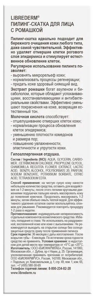 Librederm пилинг-скатка для лица с ромашкой, 75 мл информация: