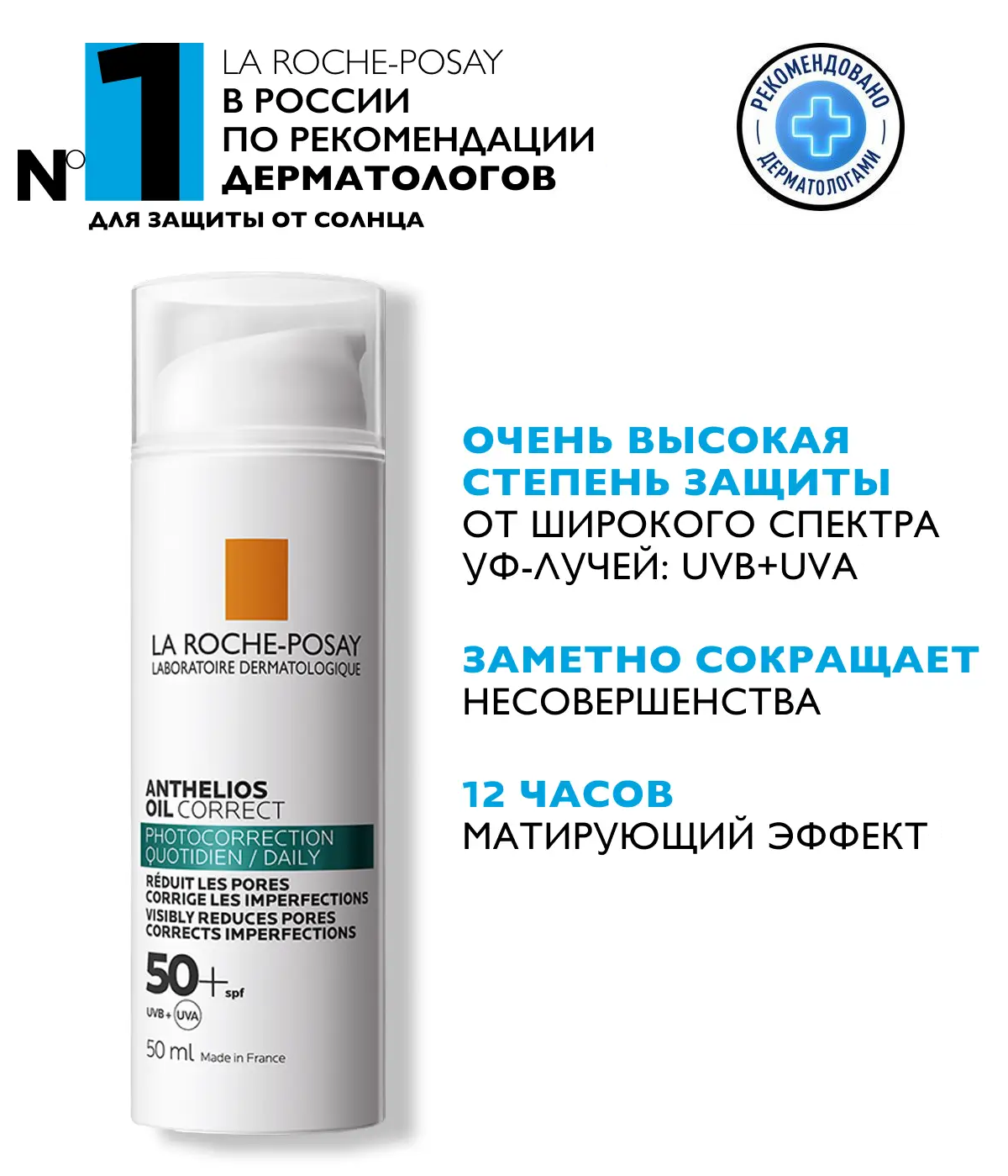 Отзывы на Солнцезащитный крем La Roche-Posay Anthelios Oil Correct SPF50+, для жирной проблемной кожи, склонной к акне, 50 мл