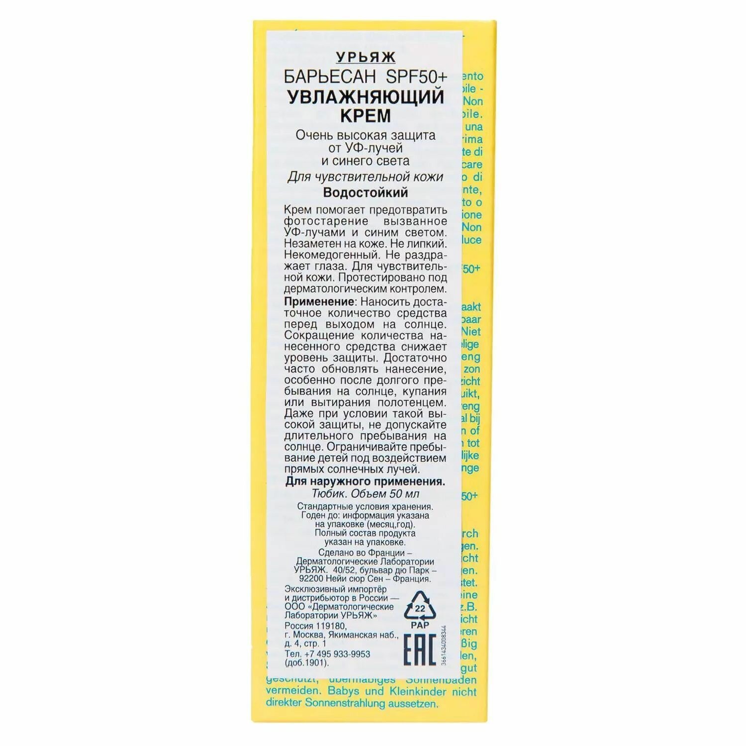 10 цен на Uriage Барьесан SPF 50+ Увлажняющий крем 50мл