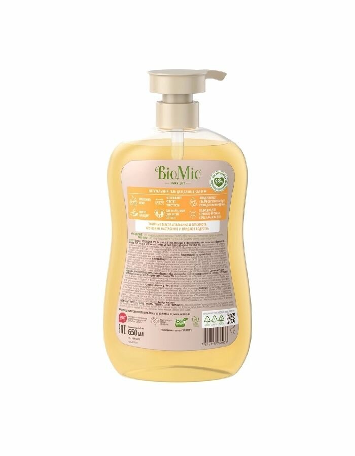 BioMio Гель для душа натуральный, с эфирными маслами апельсина и бергамота, 650 мл