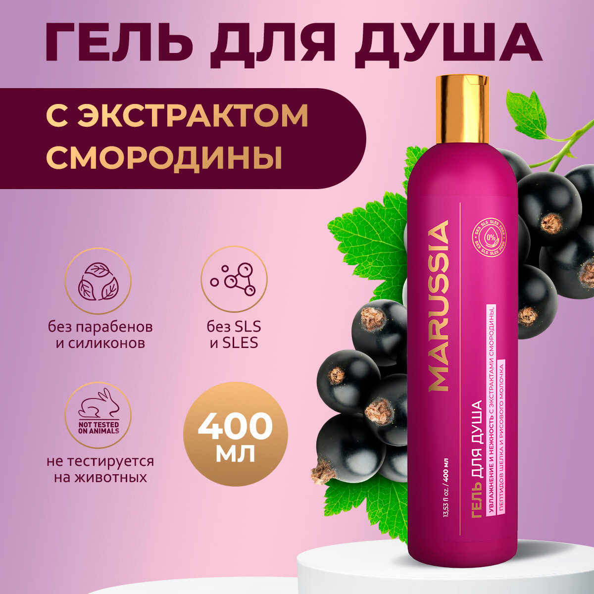 10 цен на Marussia Гель для душа парфюмированный женский / мужской, «Увлажнение и нежность» с экстрактами смородины, пептидов шелка и рисового молочка, 400 мл