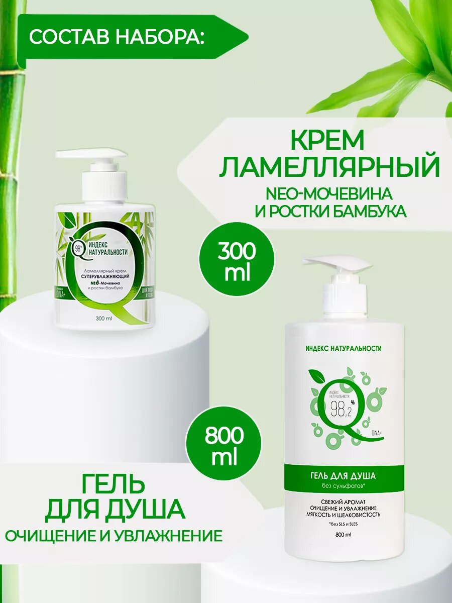 Набор ИНДЕКС НАТУРАЛЬНОСТИ для ухода за телом гель для душа крем для лица и тела информация: