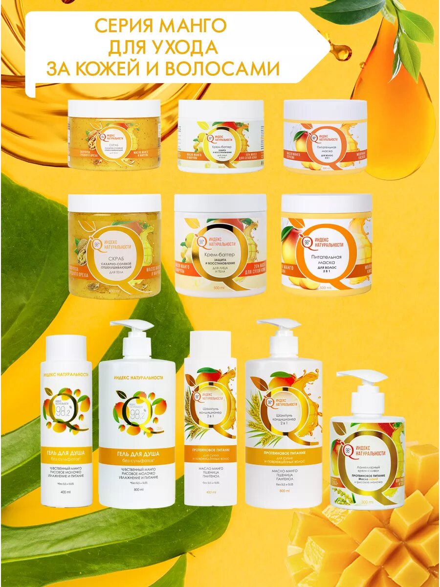 10 цен на Набор Манго ИНДЕКС НАТУРАЛЬНОСТИ гель для душа и крем для тела с ароматом манго
