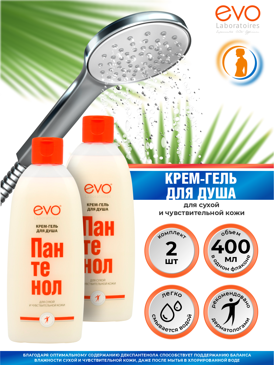 10 цен на EVO Крем-гель для душа Пантенол для сухой и чувствительной кожи 400 мл. х 2 шт.