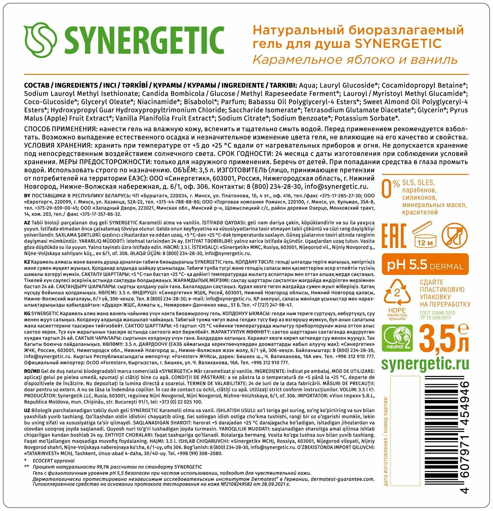 Гель для душа SYNERGETIC, биоразлагаемый, со вкусом карамельного яблока и ванили, 380 мл