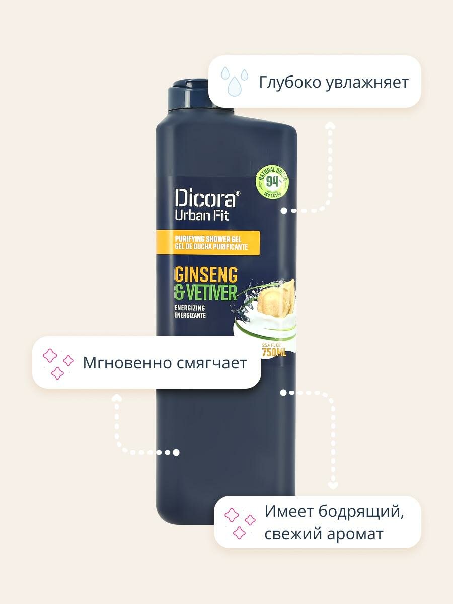 Гель для душа Dicora "Urban Fit", Ветивер и Женьшень, мужской, 750 мл (8410262902073) информация: