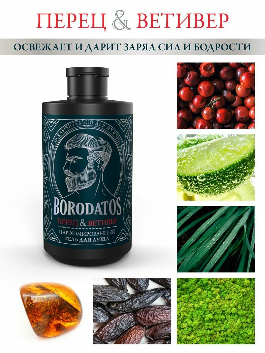 Borodatos (Бородатос) Парфюмированный гель для душа "Перец, ветивер", набор из 3 штук 3*400 мл информация:
