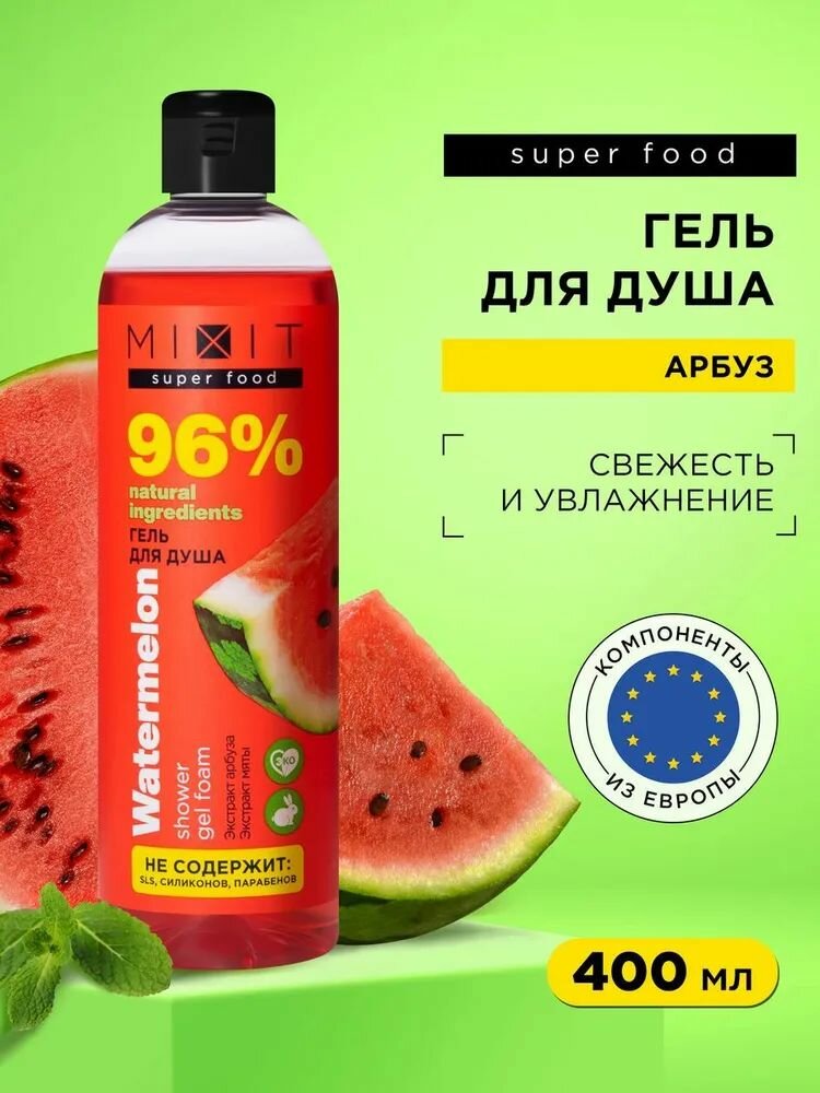 Mixit Super Food Гель для душа освежающий арбуз и мята 400 мл 1 шт 328 ₽
