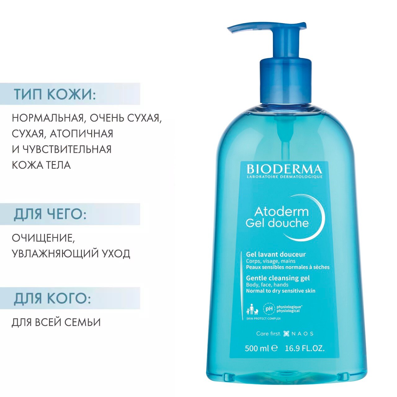 10 цен на Гель для душа BIODERMA "Atoderm", увлажнение, антибактериальный эффект, 500мл