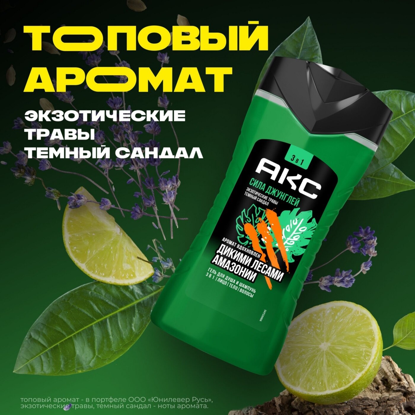 Шампунь-гель для душа AXE "Сила джунглей", 3 в 1, 250 мл