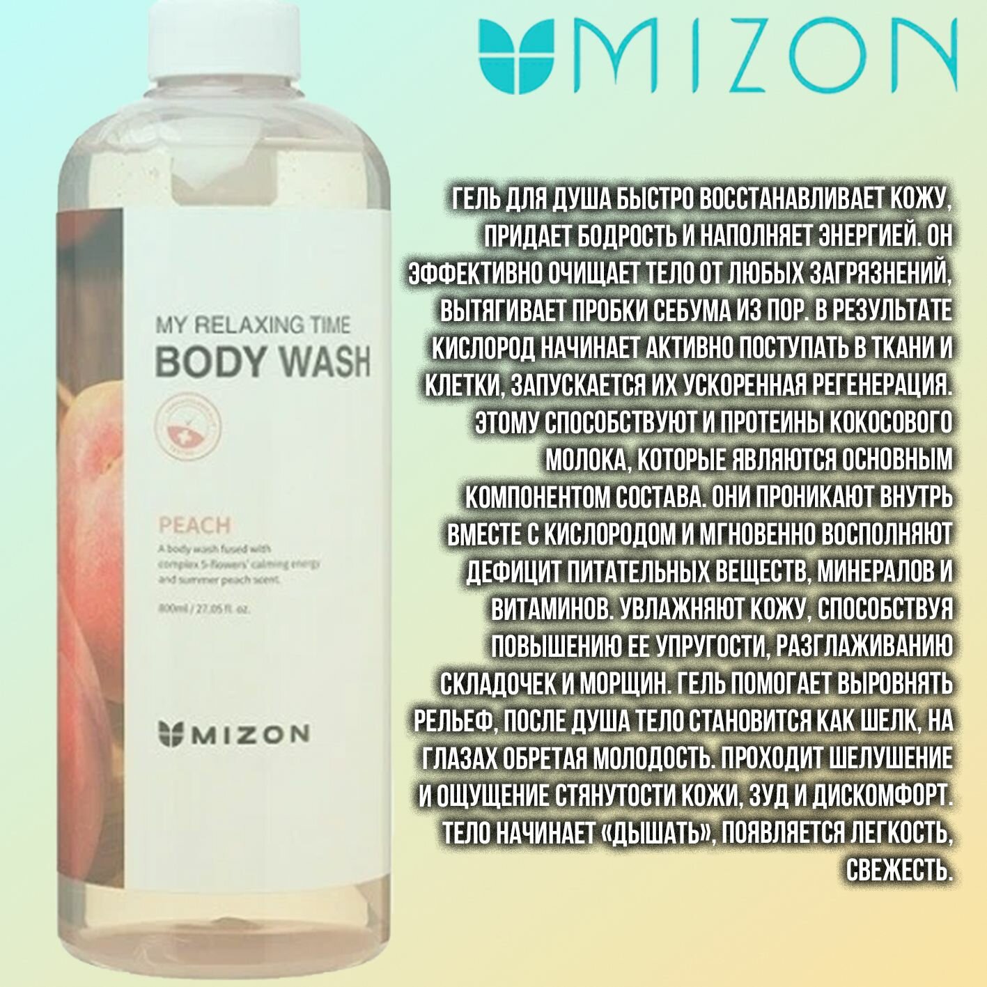 Отзывы на MIZON MY RELAXING TIME BODY WASH PEACH Гель для душа с экстрактом персика 800 мл