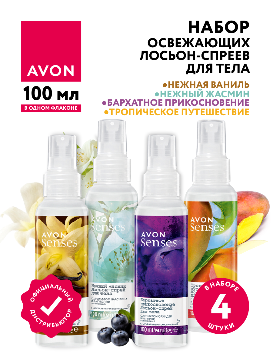 Набор освежающих лосьон-спреев для тела Avon Senses 4 аромата по 100 мл. информация: