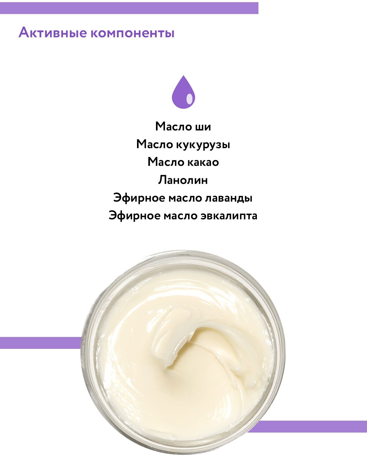 | Состав | Butyrospermum Parkii (Shea Butter), Theobroma Cacao (Cocoa) Seed Butter, Zea Mays (Corn) Germ Oil, Petrolatum, Lanolin, Aqua, Sorbitan Stearate, Lavandula Angustifolia (Lavender) Oil, Eucalypte (Eucalyptus globulus) Essential Oil, Parfum, Phenoxyethanol (and) Ethylhexylglycerin, Disodium EDTA. |