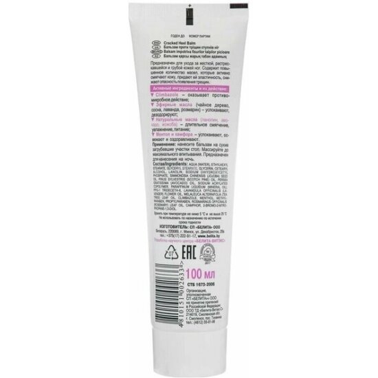 | Способ применения | Нанесите бальзам на сухие загрубевшие участки стоп. Массируйте до максимального впитывания. Предназначен для нанесения на ночь. |