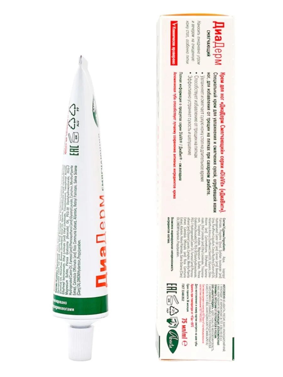 DiaVit Крем для ног ДиаДерм смягчающий для больных сахарным диабетом, 75 мл, 21 шт 8 112 ₽
