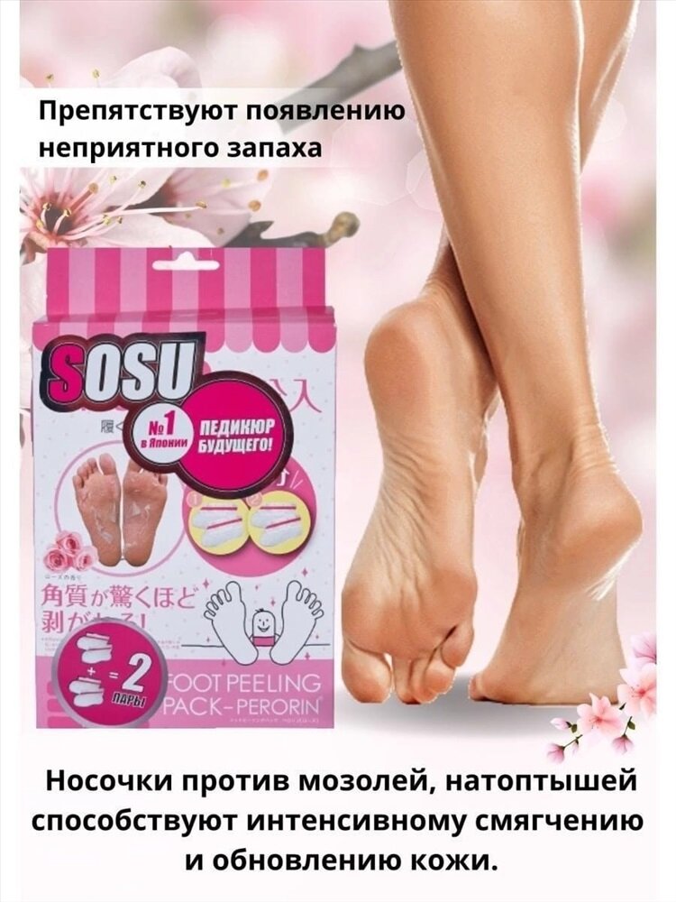 Отзывы на SOSU Носочки для педикюра с ароматом розы, для гладких пяток, от натоптышей и трещин, 2 пары