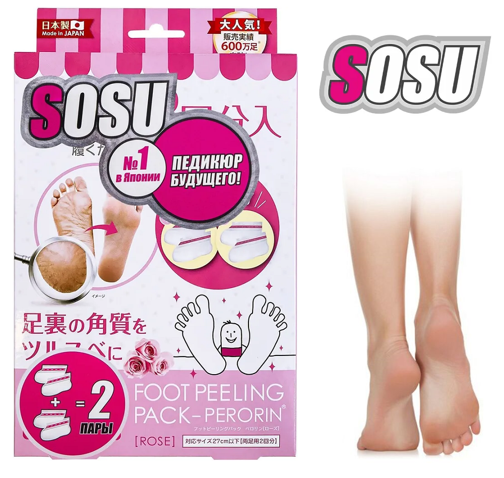 10 цен на SOSU Носочки для педикюра с ароматом розы, для гладких пяток, от натоптышей и трещин, 2 пары