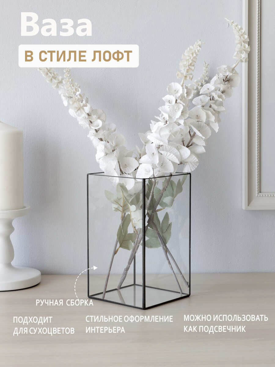 Прозрачная настольная ваза Bogacho Белла из стекла на декоративной ножке для букетов, высоких цветов и сухоцветов