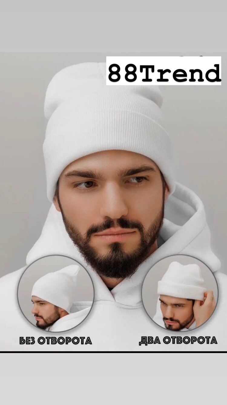 Отзывы на Шапка бини 88trend шапка бини двойная с отворотом для мужчин и женщин, размер 52-58, белый