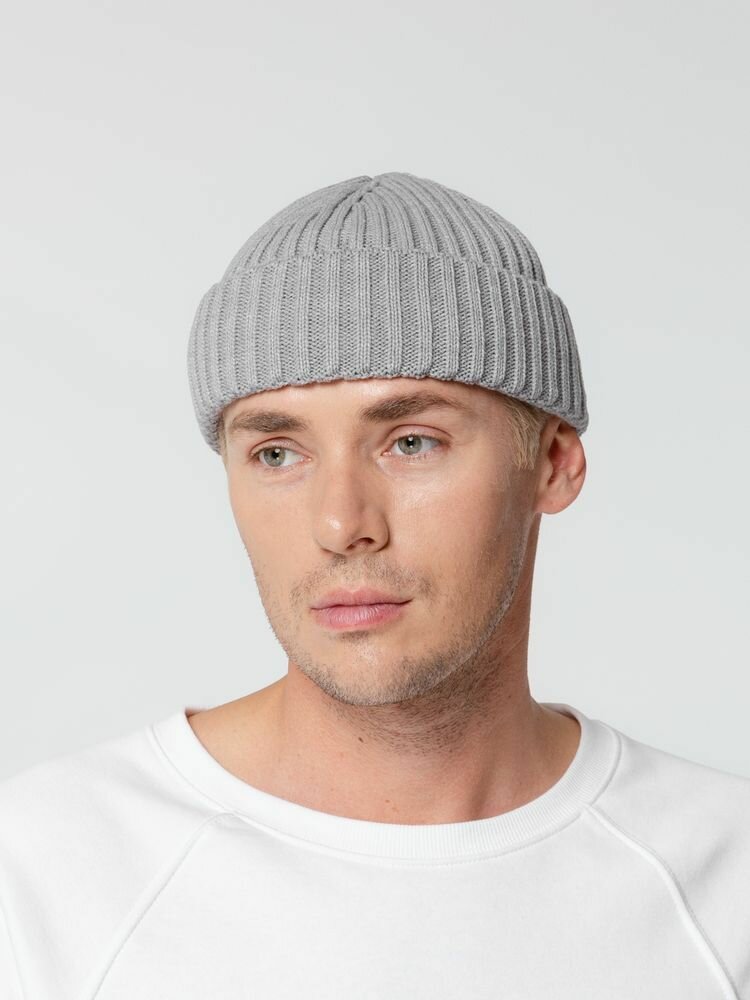 Шапка мужская женская унисекс укороченная с отворотом бини Hipsta, светло-серая 695 ₽