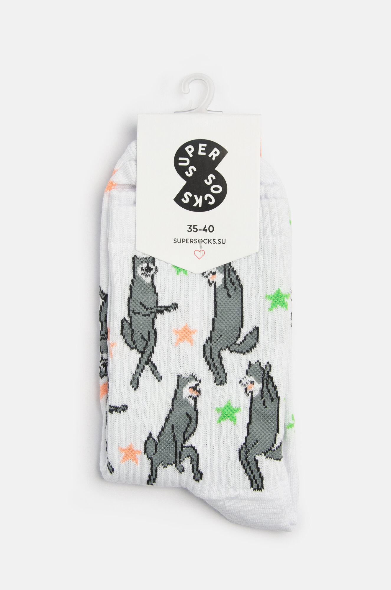 Носки SUPER SOCKS Курва Бобер, белый 389 ₽