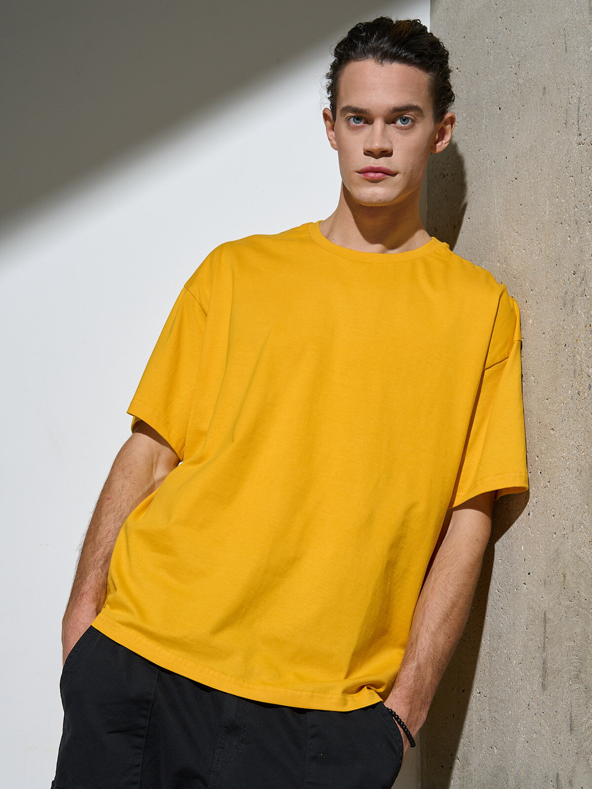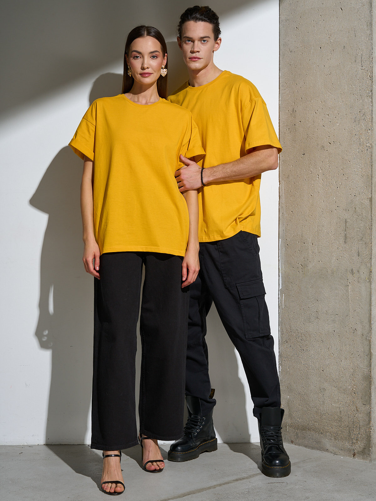 Футболка оверсайз хлопок Uzcotton однотонная базовая свободная плотная Желтый44-46\S 640 ₽