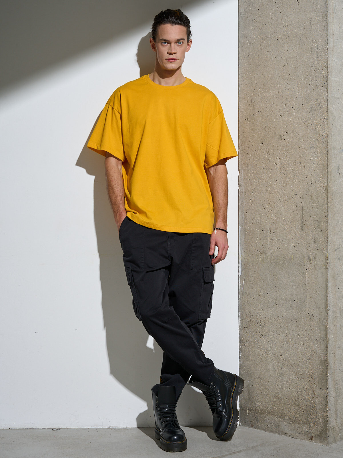 Футболка оверсайз хлопок Uzcotton однотонная базовая свободная плотная Горчица46-48\M 640 ₽