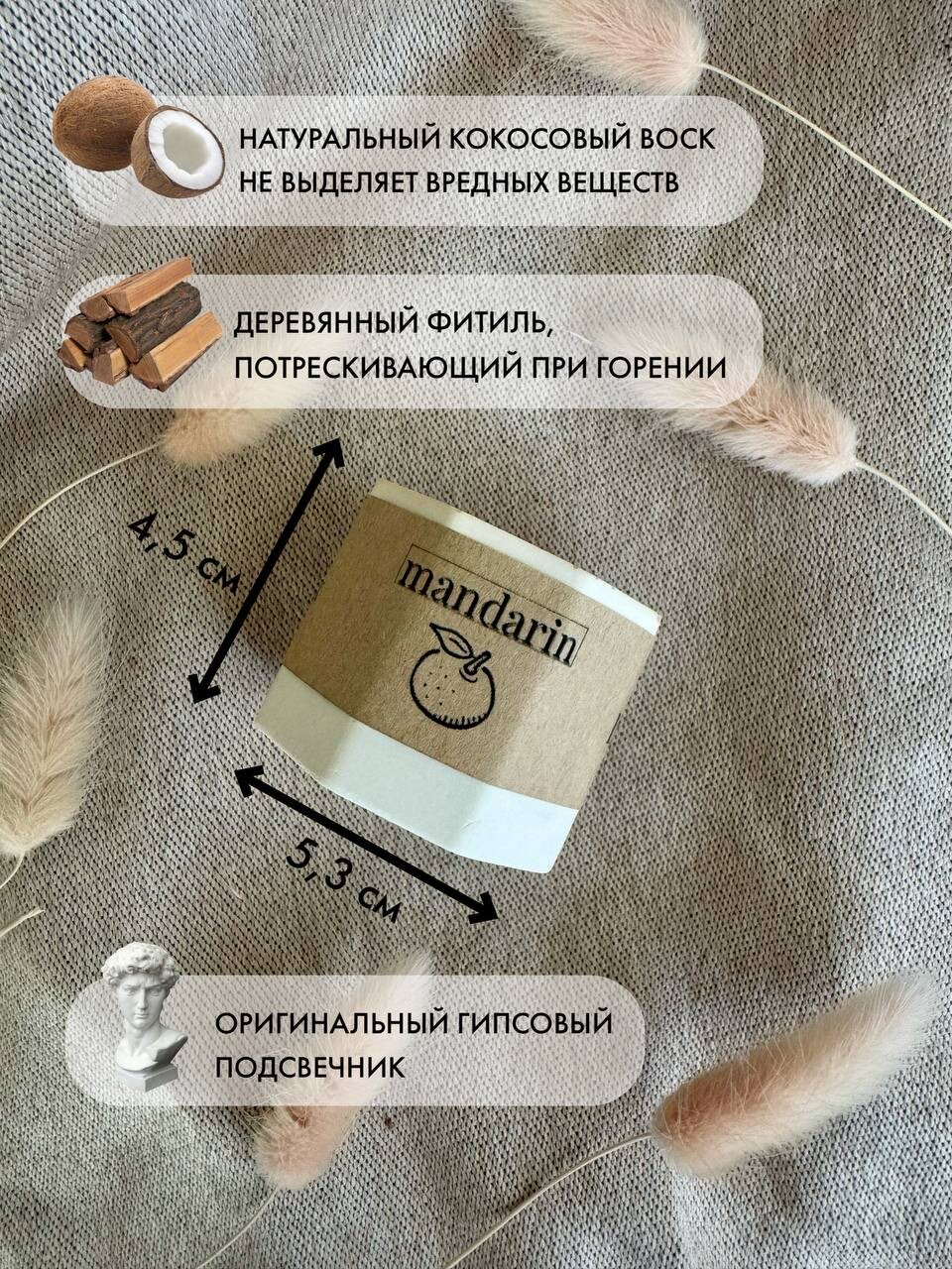Ароматическая свеча AROMALAND "Мандарин", кокосовый воск, деревянный фитиль информация: