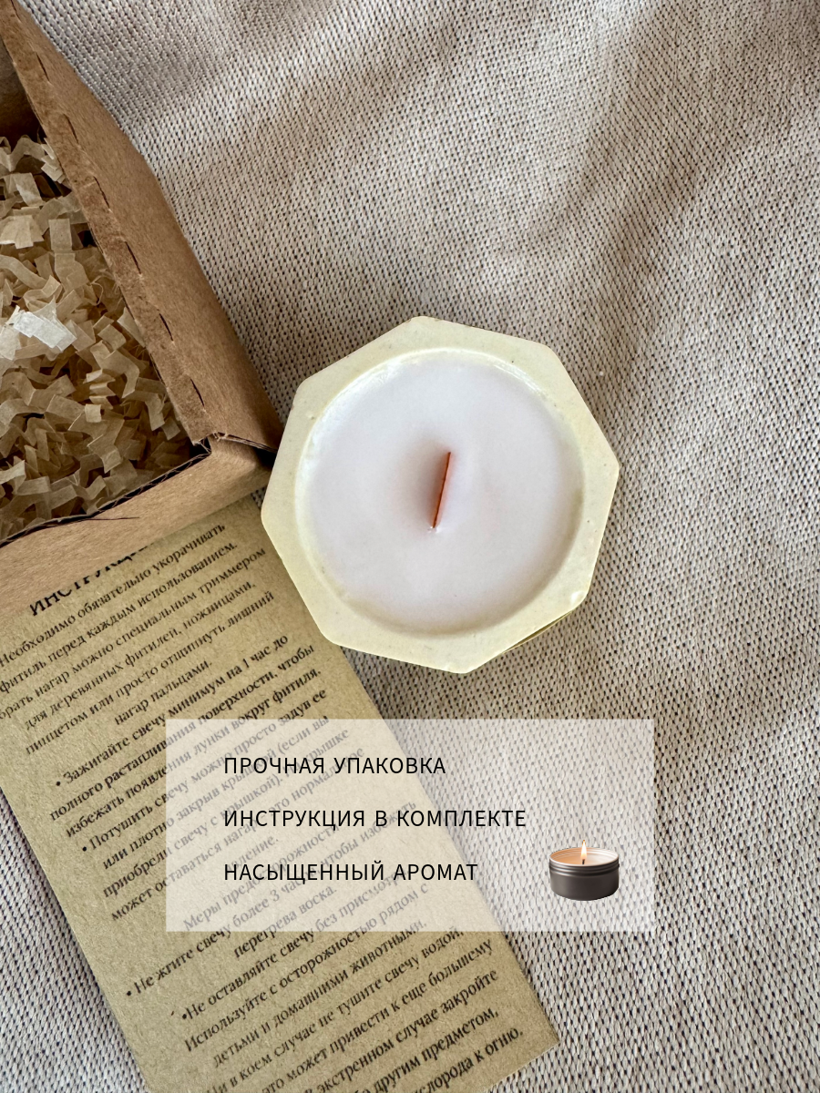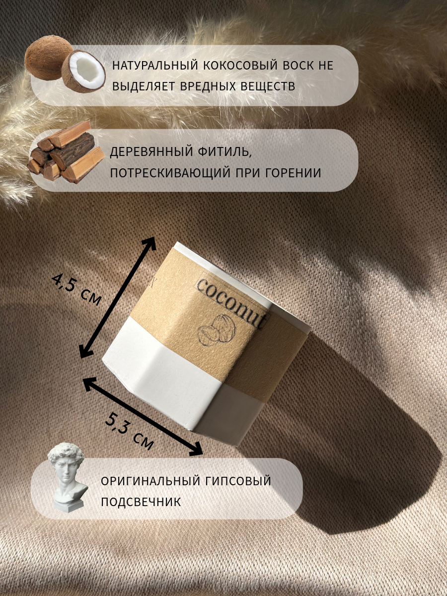10 цен на Свеча AROMALAND "Баунти", деревянный фитиль, цилиндрическая, кокосовый воск