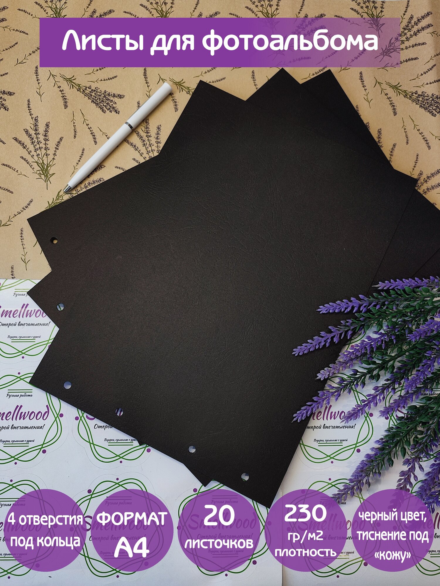 Листы для фотоальбома Smellwood, А4, 20 листов, перфорация, тиснение под кожу информация: