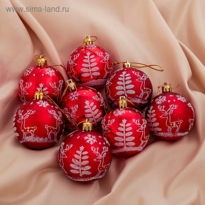 10 цен на Ёлочные игрушки, шары новогодние , пластик, набор d-6 см, 8 шт "Оленёнок у ёлочки" красный