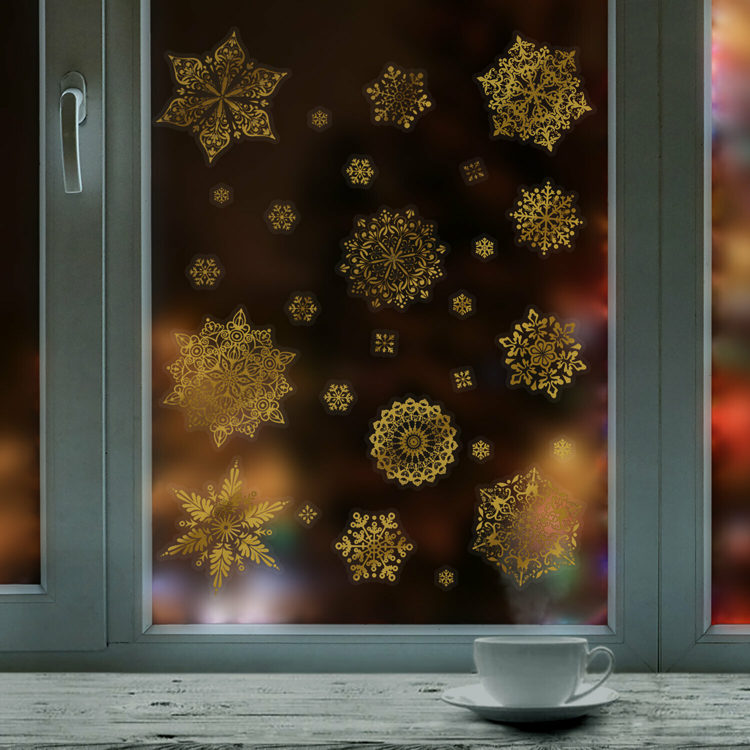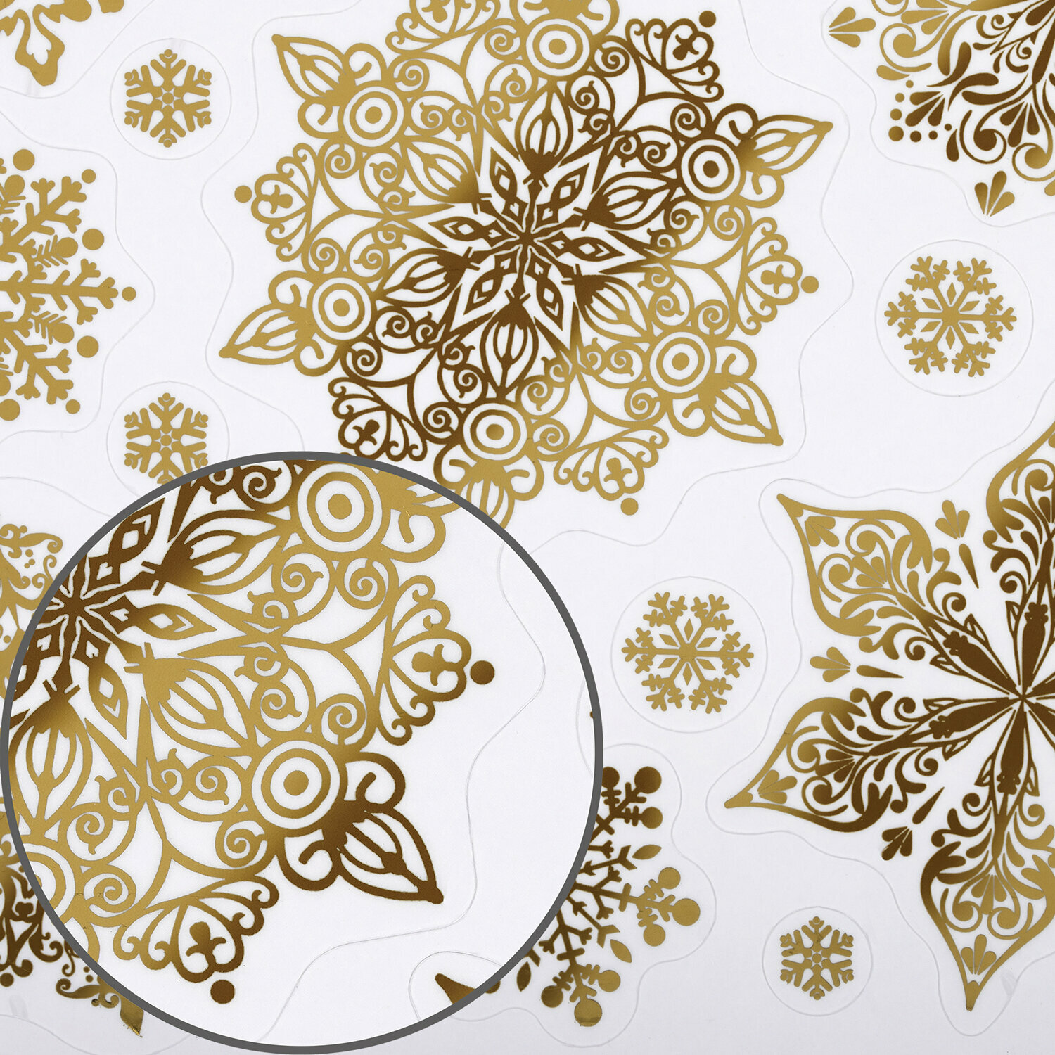 Наклейка для окон двусторонняя многоразовая 30х38 см, "Снежинки", фольга, золото, золотая сказка, 591927 информация: