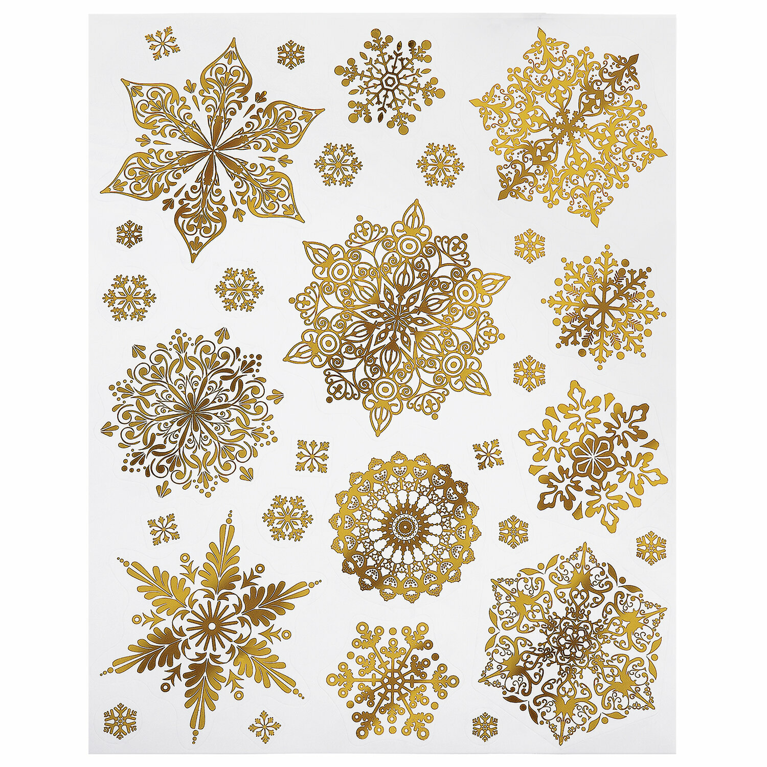 Наклейка для окон Золотая сказка двусторонняя многоразовая, 30х38 см, "Снежинки", фольга, золото 404 ₽