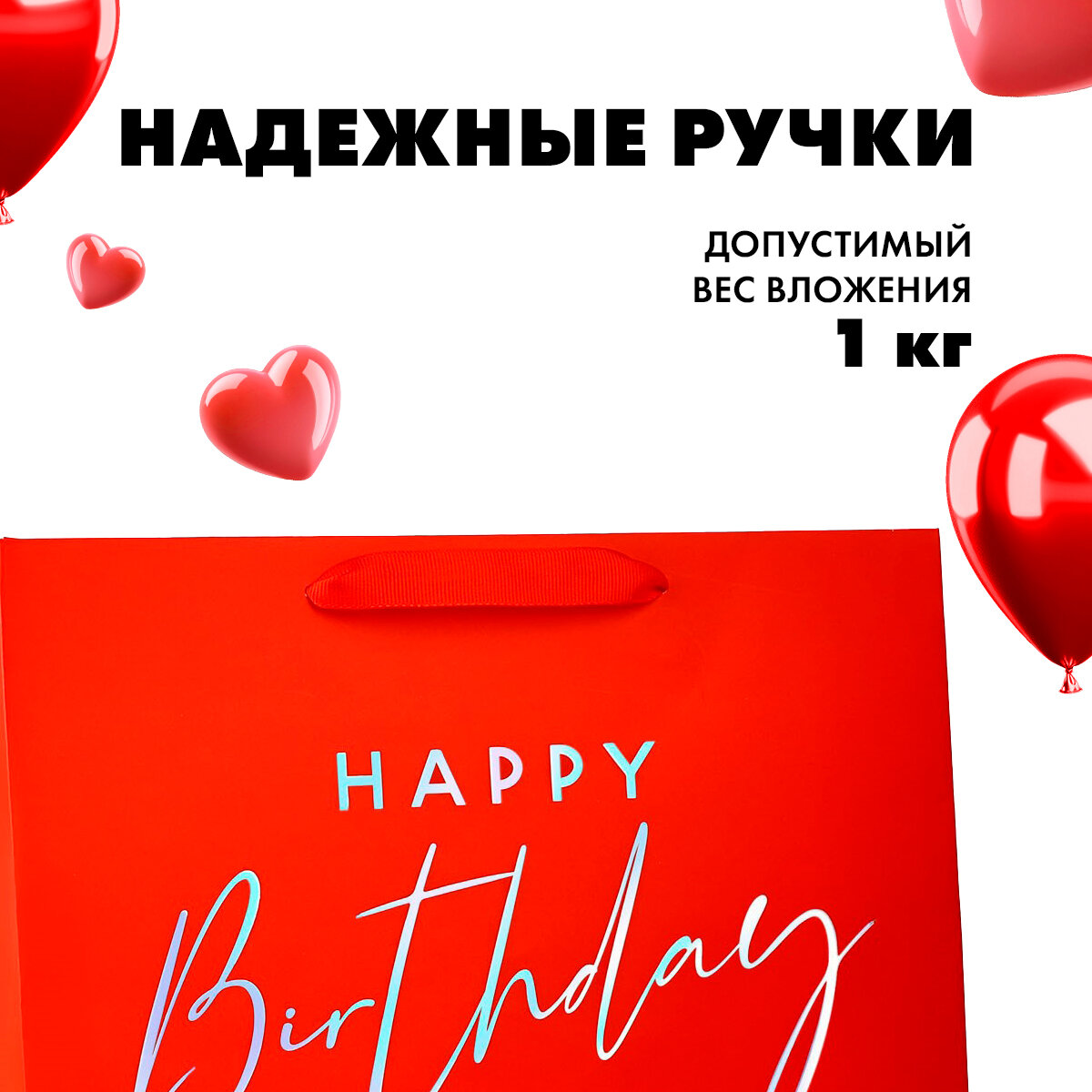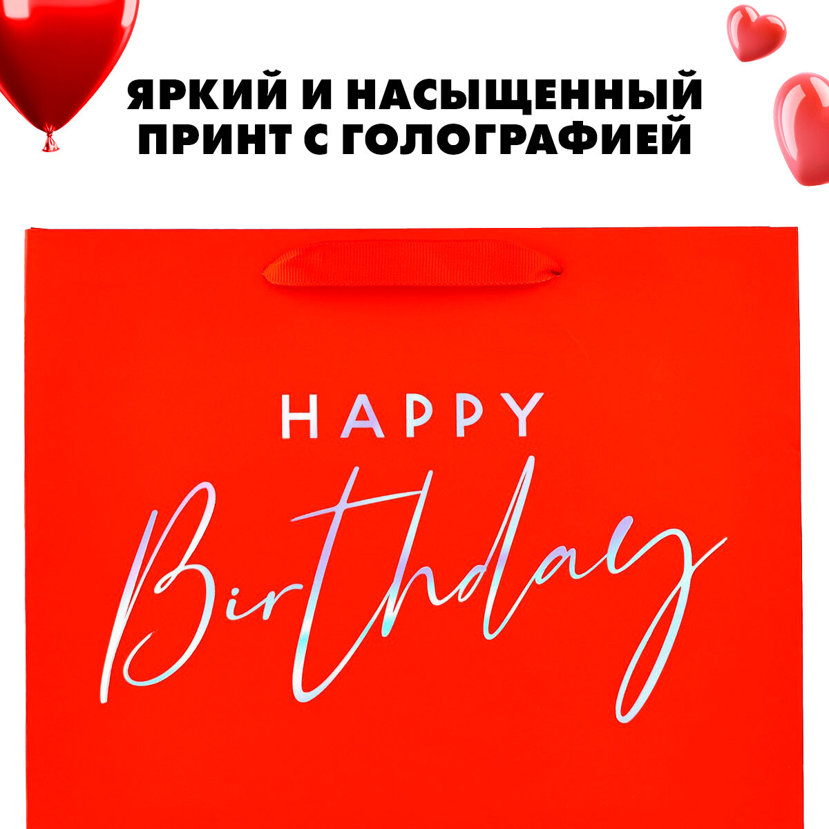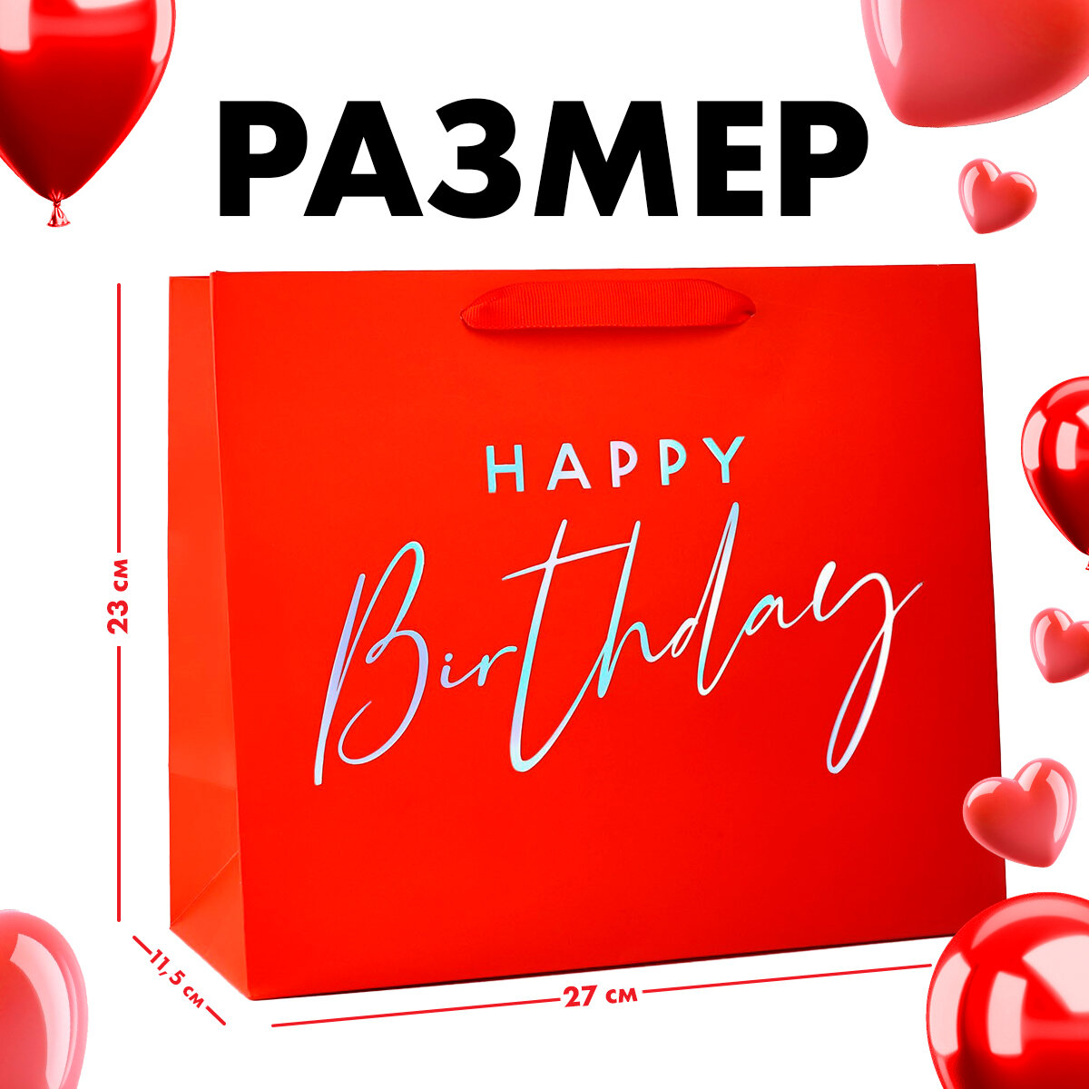 Пакет подарочный Happy Birthday, голография, ML 27 × 11.5 × 23 см, красный информация: