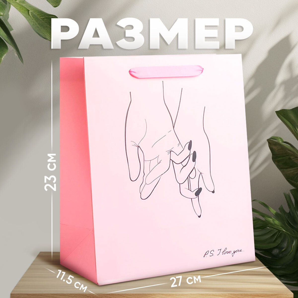Пакет подарочный ламинированный "I love you", 23 × 27 × 11,5 см, розовый, для упаковки подарка информация: