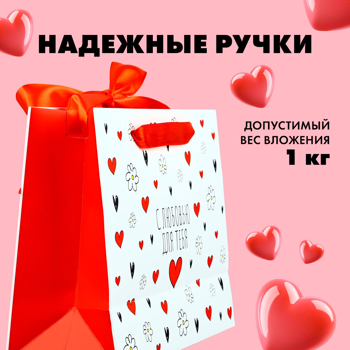 Отзывы на Пакет ламинированный с лентой «В сердечке», ML 27 × 11,5 × 23 см