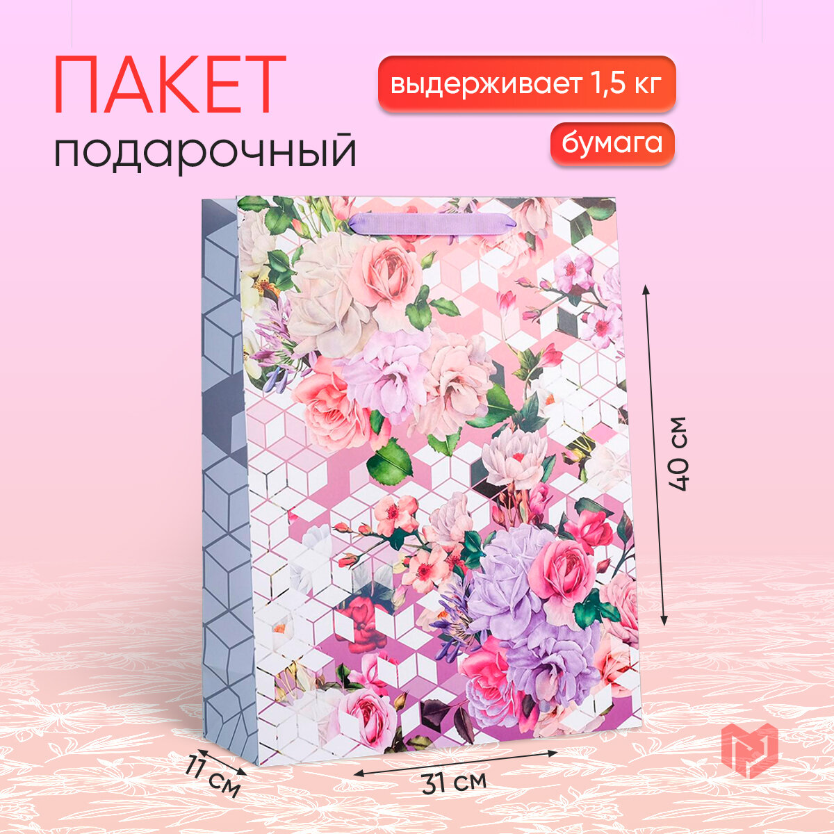 Пакет подарочный ламинированный L, 40 × 31 × 11,5, двухсторонний «Цветы», с тишью и открыткой 333 ₽