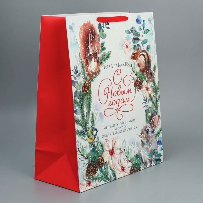 Пакет подарочный ламинированный, упаковка, "Красный", L 31 x 40 x 11.5 см