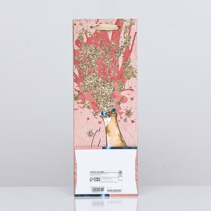 Отзывы на Пакет подарочный новогодний ламинированный под бутылку "Брызги шампанского",13 х 36 х 10 см