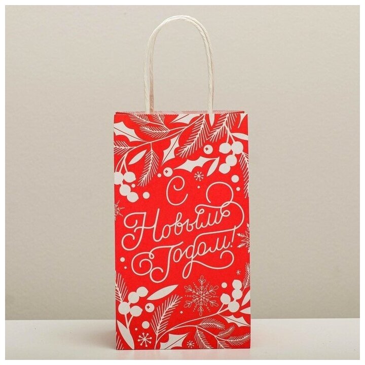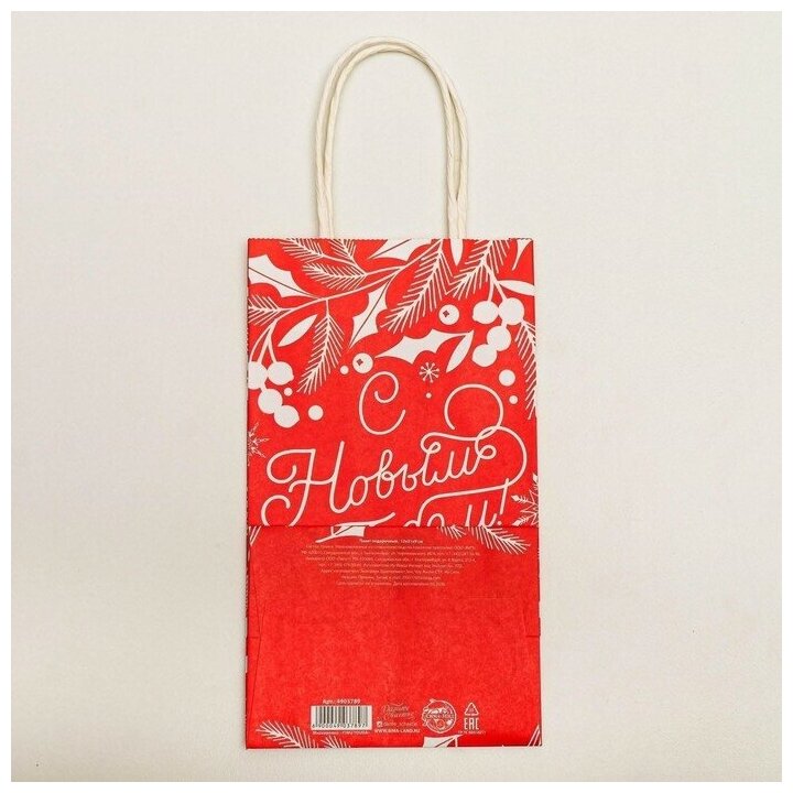 Пакет подарочный крафтовый «С Новым годом!», 12 × 21 × 9 см информация: