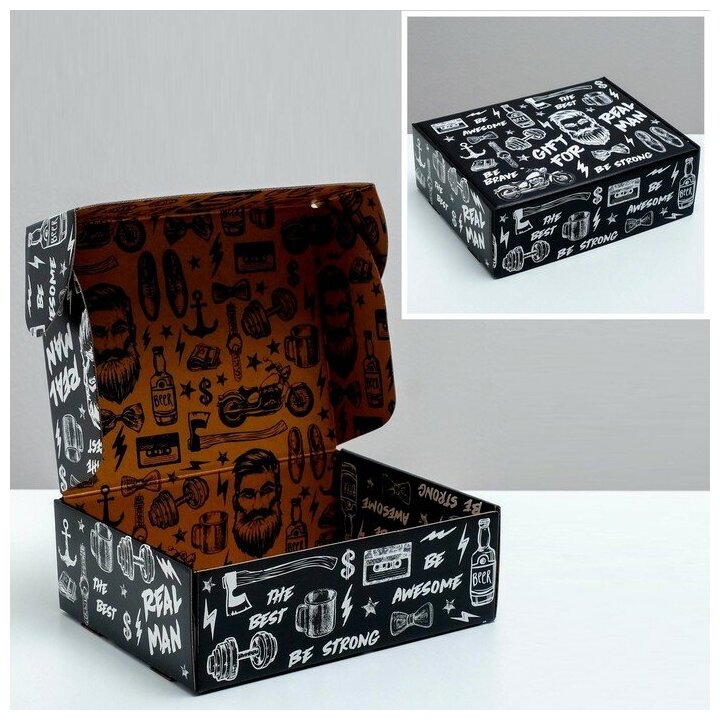 Коробка двухсторонняя складная «Брутальному мужчине», 27 × 21 × 9 см