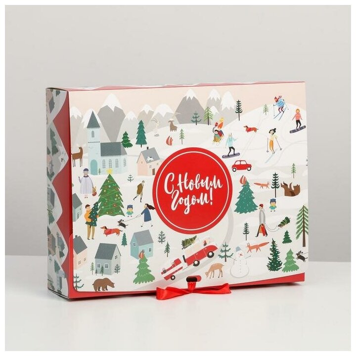 Складная коробка подарочная Новогодние истории ,31 x 24,5 x 9 см