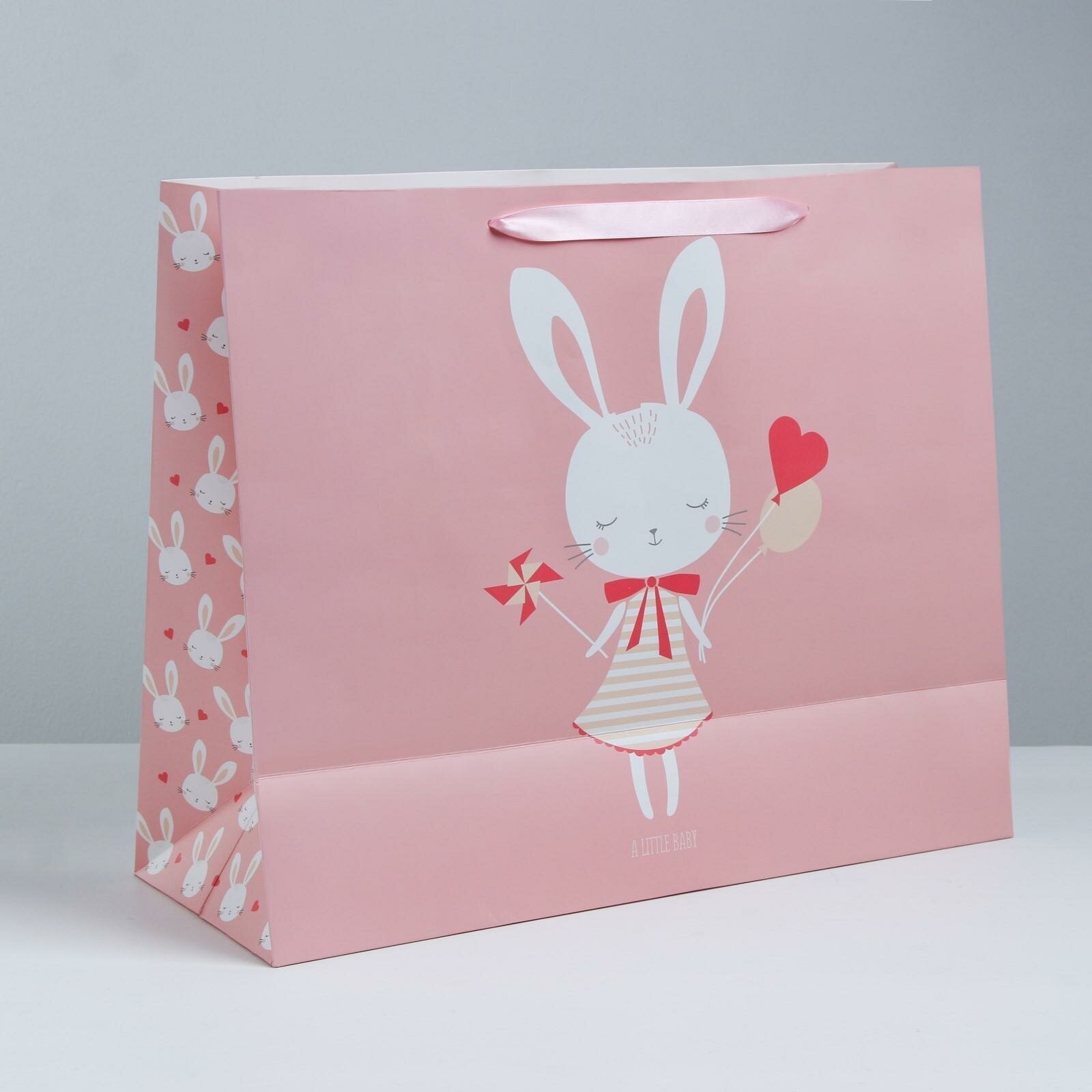 Подарочный пакет Riota "Сердечки", прямоугольный, 39x27x17 см