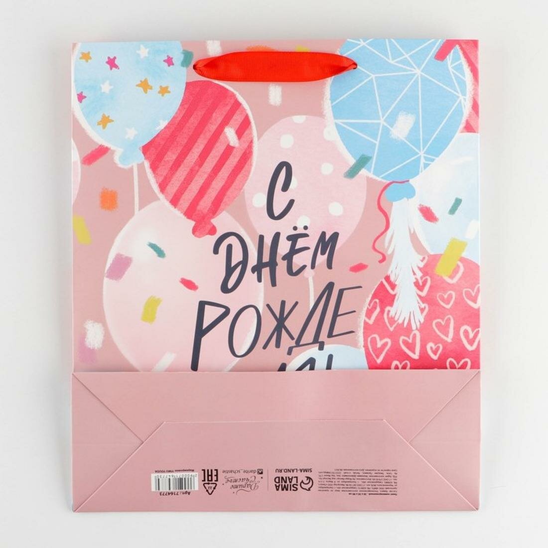 Пакет подарочный крафтовый, упаковка, С днём рождения , 32 х 28 х 15 см 428 ₽
