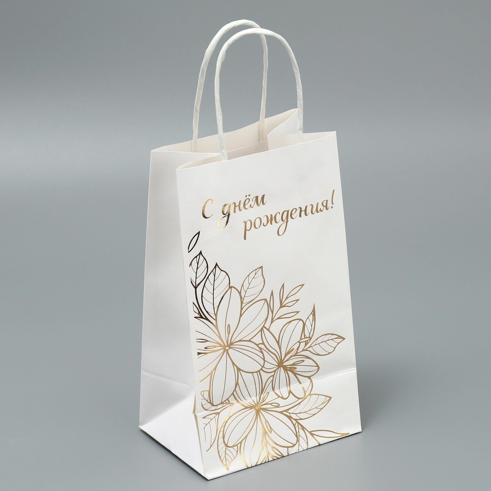 Пакет подарочный крафтовый, упаковка, С днём рождения! , 12 х 21 х 9 см информация: