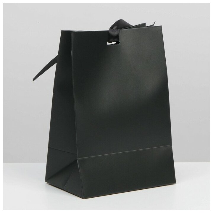 Пакет подарочный с лентой, упаковка, «Чёрный», 13 х 19 х 9 см информация: