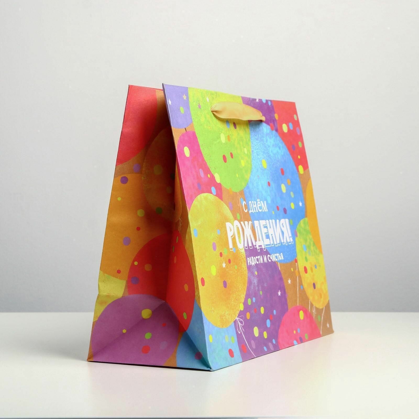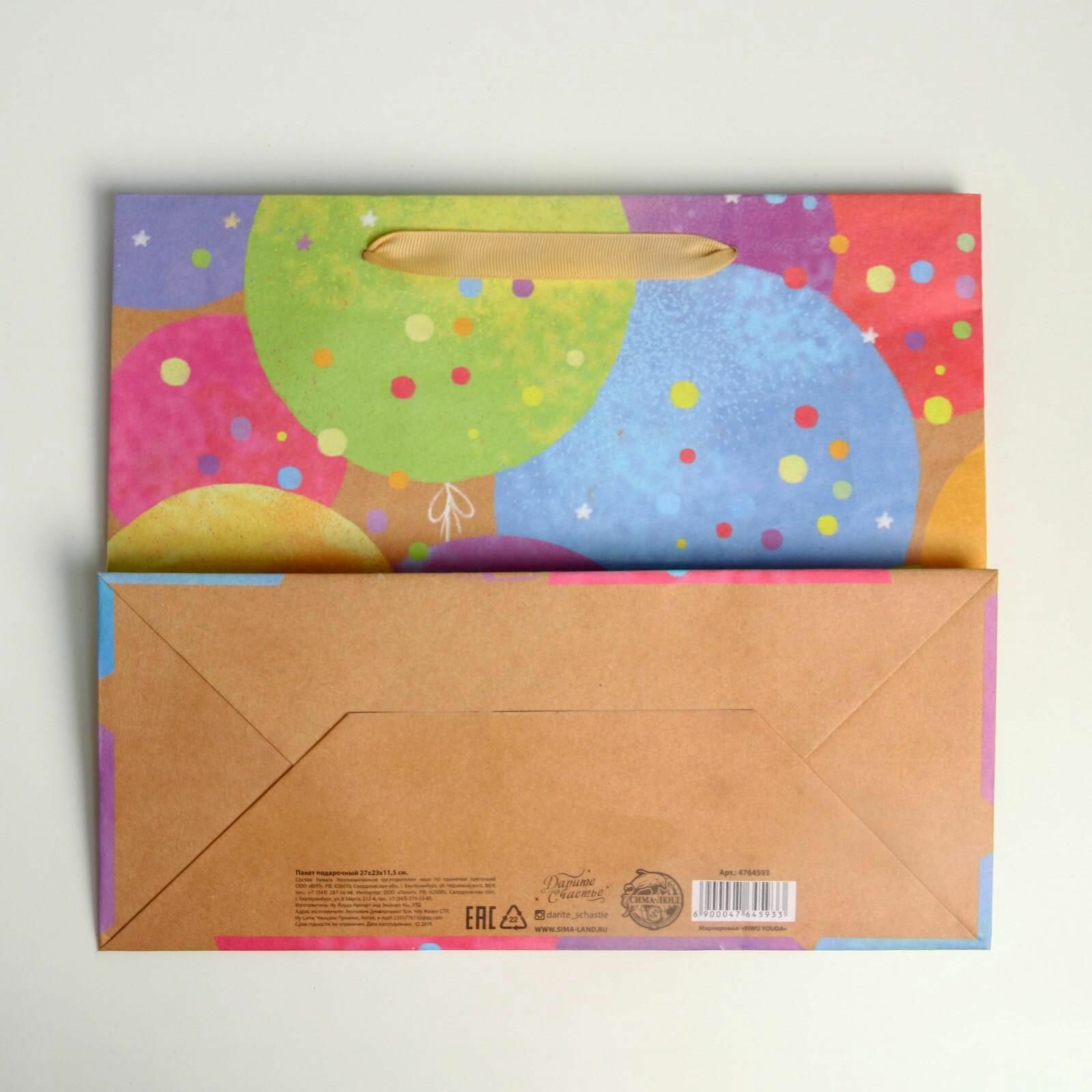 Пакет крафтовый горизонтальный "С Днем Рождения!", ML 27 x 23 x 11,5 см информация: